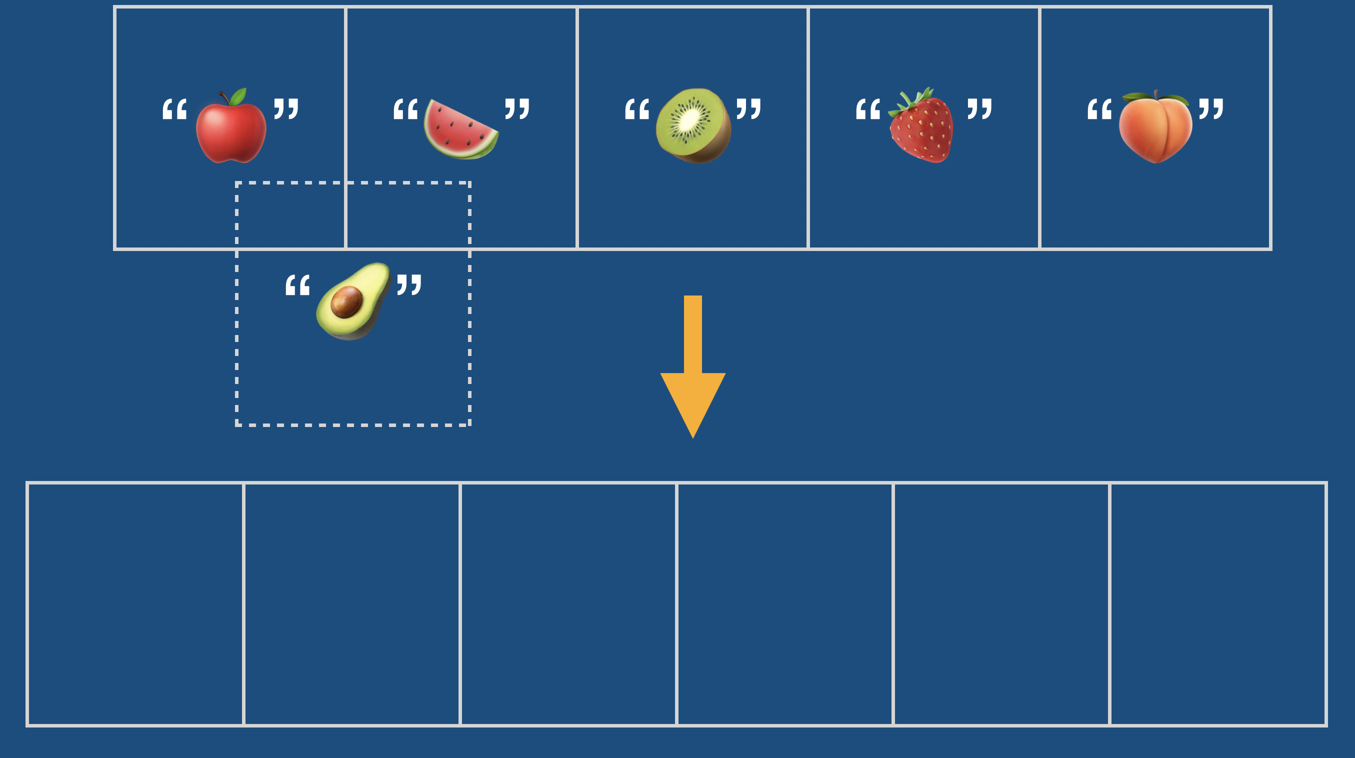 데이터를 배열의 중간에 추가하고 싶을 때는 어떻게 해야할까? 먼저 공간을 확보하기 위해 추가하려는 위치의 오른쪽 요소들을 끝쪽으로 옮겨야 한다. 보통 속도의 작업이다.