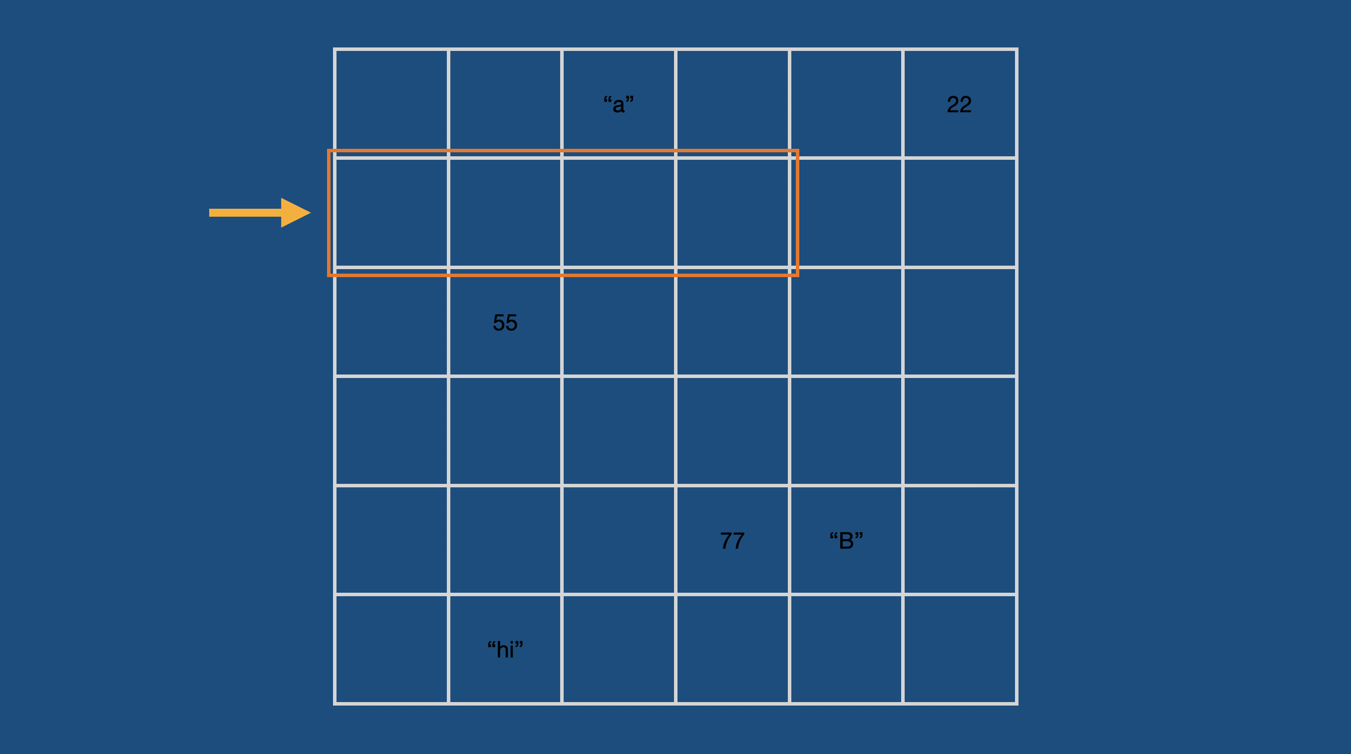 그 후 컴퓨터는 이 배열이 얼마나 긴지를 기억하고, 해당 길이만큼 박스를 나란히 위치하도록 해준다. 이렇게 메모리상에서 여러 값(데이터)을 연이어서 저장하고 사용할 수 있는 방법이 배열이다.