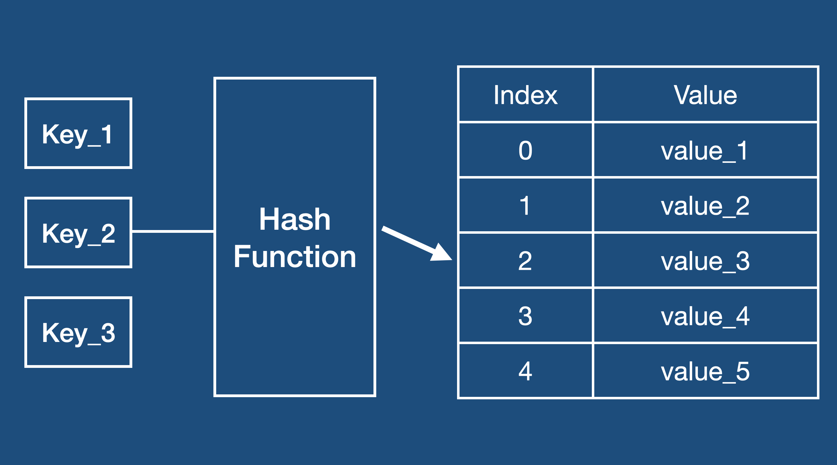 이제 알다시피 배열은 인덱스 번호를 알아야 요소에 접근 할 수 있다. 그렇다면 해시 테이블은 왜 빠른 것일까? 그 이유는 해시 함수(hash function) 때문이다. 해시 함수는 우리가 저장하고 싶은 키를 숫자로 바꿔준다. 그리고 그 숫자는 인덱스가 된다. 그리고 해당 인덱스에 값이 저장되는 것이다.