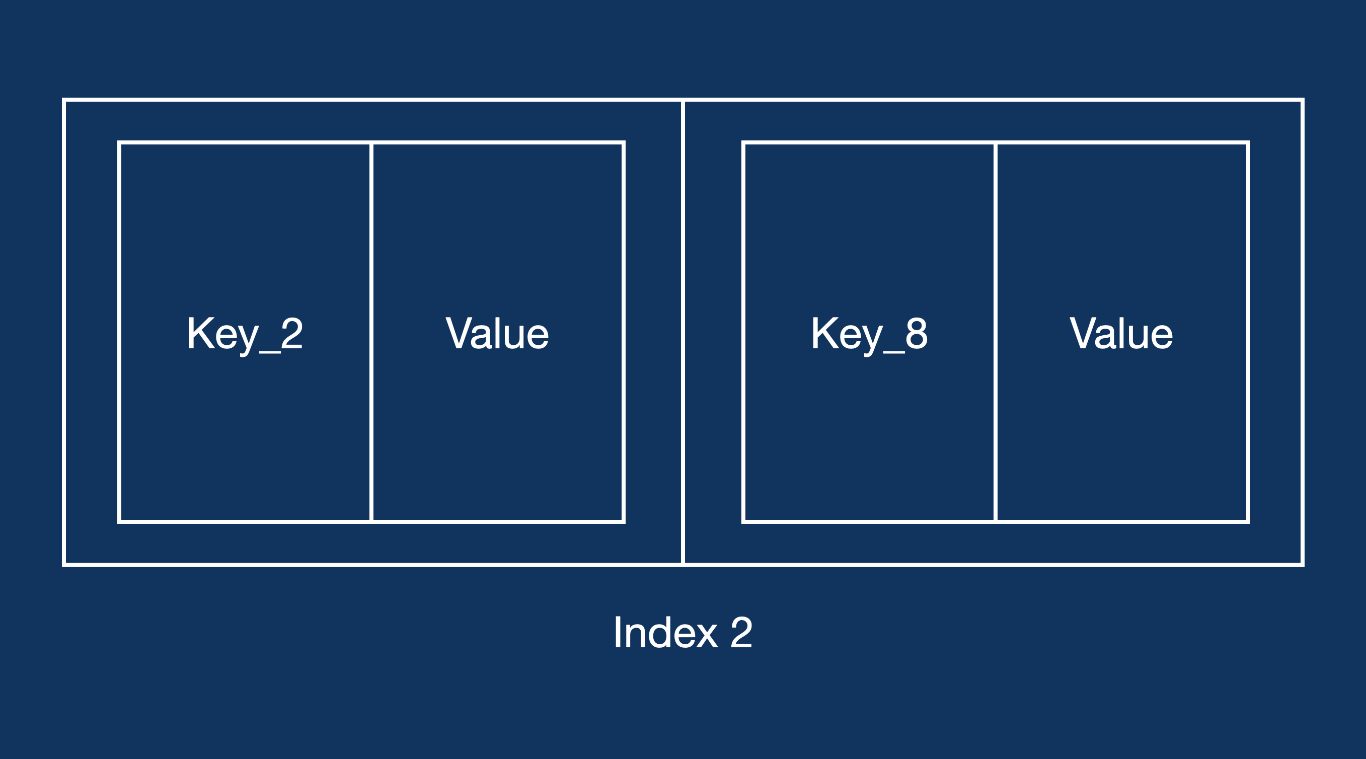 예를 들어 2번 인덱스에 각기 다른 키가 존재할 경우 두 개의 쌍을 저장한다.