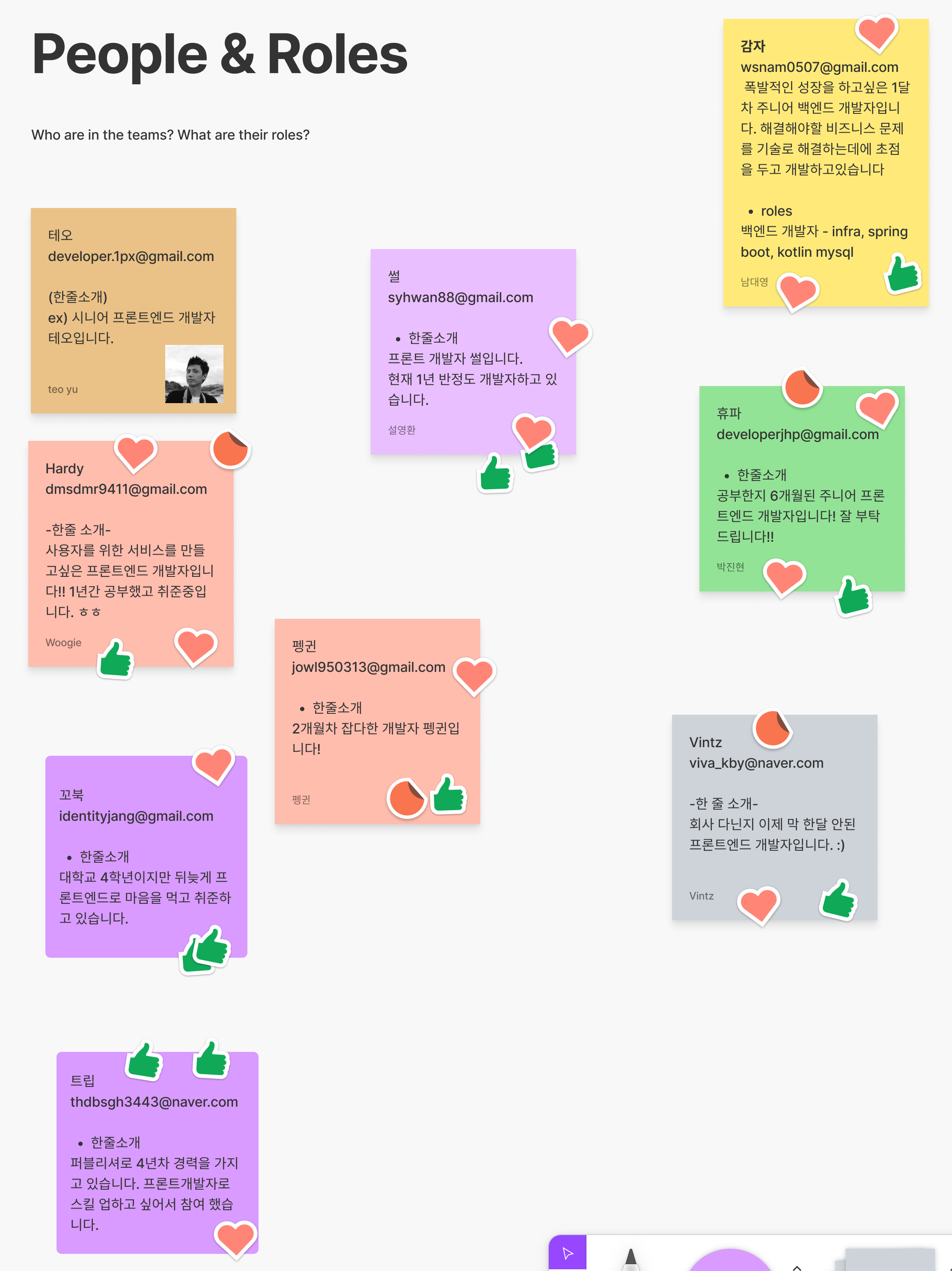 다양한 곳에서 개발하고 있는 개발자들을 만났다. 그리고 5일 만에 혼자선 할 수 없는 성장을 이뤘다고 생각한다. 본인의 강점들을 아낌없이 공유해주었고, 서로 습득하며 개발을 이어갔다. 너무나 소중하고 재밌는 경험이었고 이런 활동들을 더 찾아보고 실행해야겠단 생각이 들었다. 스프린트라는 프로세스보다도 결국엔 좋은 팀원들이 모여 한 곳을 바라보고 각자 열심히 해주었기에 잘 마무리 되었다고 생각한다.