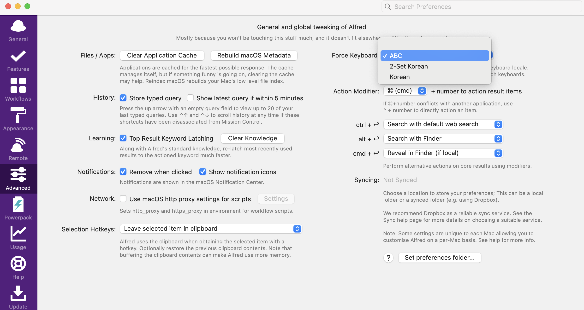 나는 알프레드를 사용할 때 영어로 시작할 때가 많다. 특히 영어단어 검색이라던지, 키워드로 실행할 때 키보드에 한글로 되어있는 설정을 영어로 바꾸는 일이 계속해서 일어나다 보면 이것도 번거로울 때가 많다.(특히 맥북 키보드라면 더더욱)