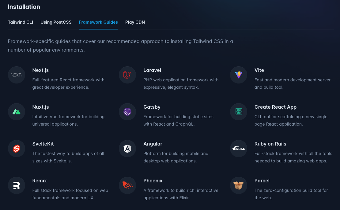 영어를 잘 모르는 나도 공식 문서를 통해 쉽게 설치하고 적용할 수 있었다. 다양한 설치 방법들이 존재하는데 나같은 경우 CRA를 통해 프로젝트를 만들었기 때문에 프레임워크 가이드 탭의 CRA를 통해 설치했다.
