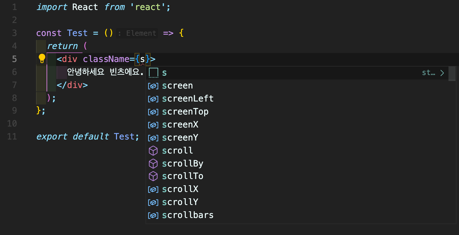 키워드 s만 입력해도 자동으로 'styles.'이 작성된다. 그렇다면 css를 import 해올 땐?