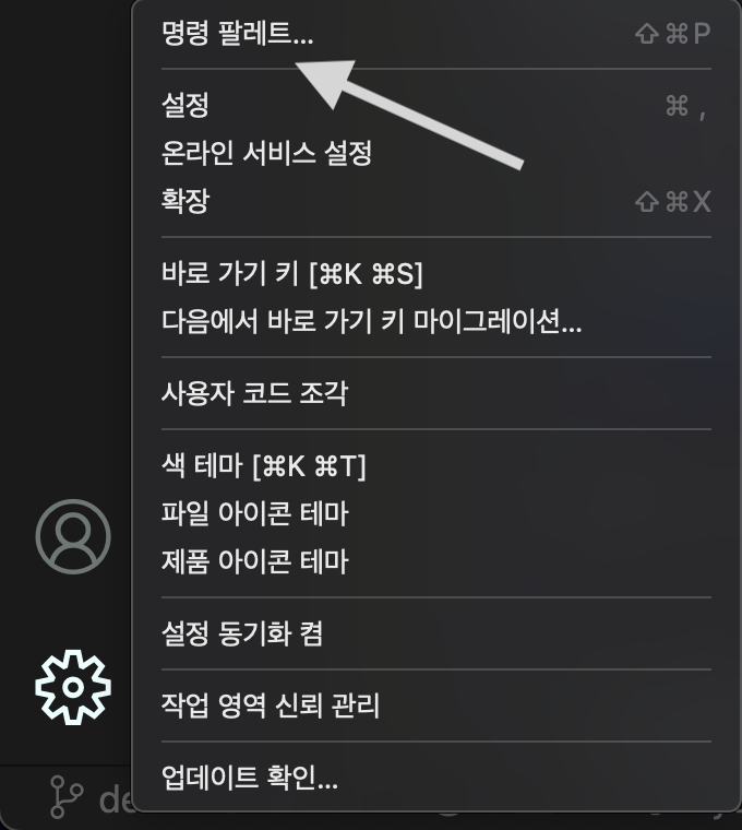 1. 명령 팔레트 실행(맥기준 shift + cmd + p)