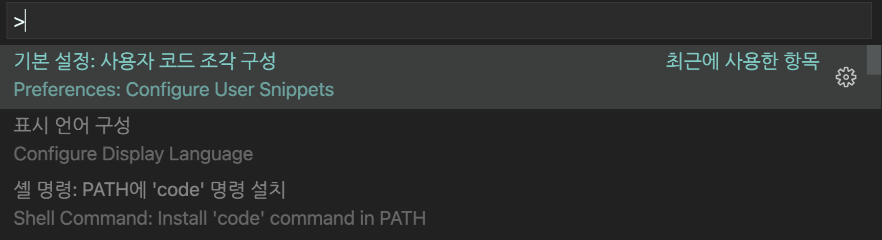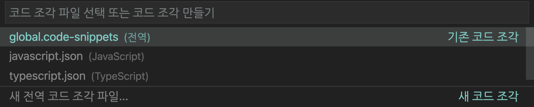 리액트로 개발하다 보면 반복적으로 작성해야 하는 코드들이 있다. 이런 것들이 쌓이다 보면 은근 귀찮고 스트레스가 누적 되기도 한다. 리액트 코드 스니펫 익스텐션이 있긴 하지만 이걸로는 부족했다. 그렇게 방법을 찾다가 정말 유용한 기능을 발견하게 되었다. 바로 VSC에서 지원하는 사용자 코드 조각 구성(configure user snippets)이다. 이거..정말 좋다. 쓰면서 개발 효율이 정말 높아졌다.