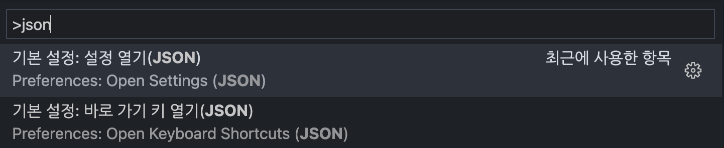 - cmd(윈도우는 ctrl) + shift + p로 명령 팔레트 실행
