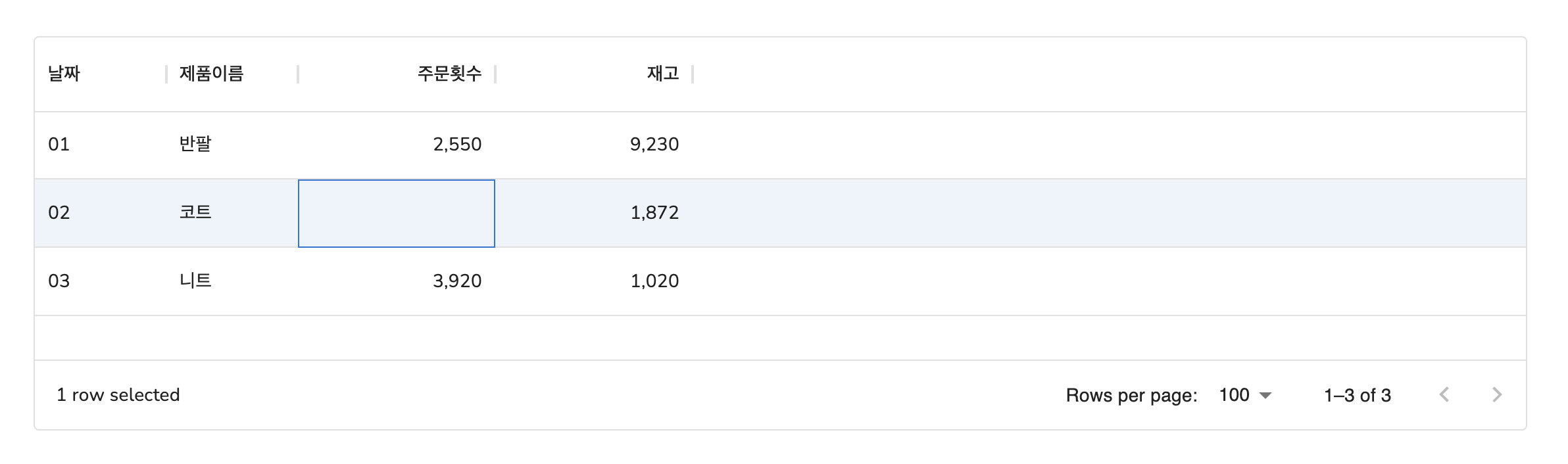 { id: 3, date: '03', name: '니트', orders: 3920, stock: 1020 },