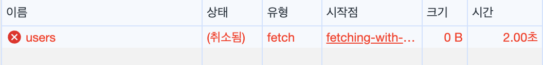 요청이 정말 취소가 되었는지 네트워크 탭에서 확인을 해보자.