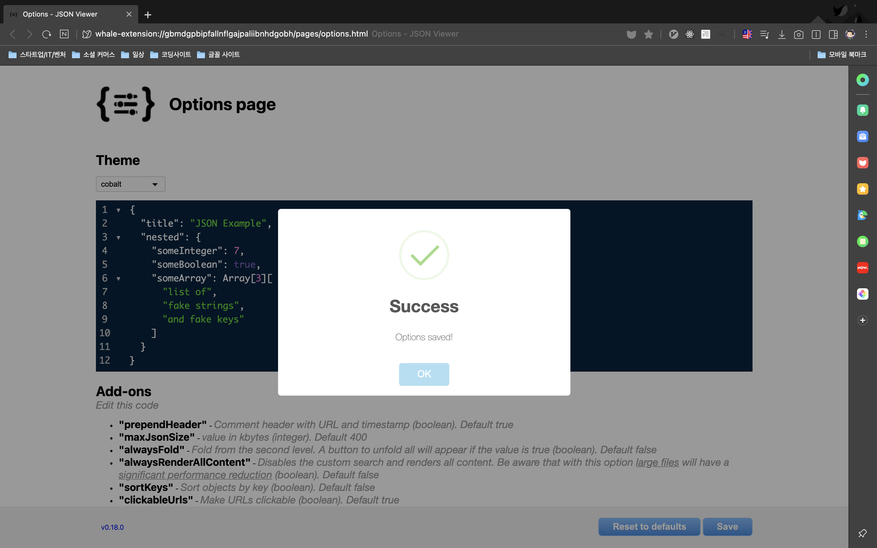 또한 JSON Viewer 옵션에서 테마를 변경할 수도 있습니다.