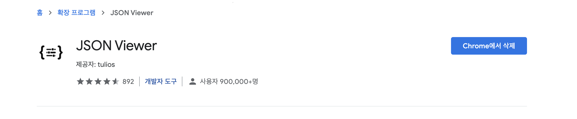 크롬이나 웨일 브라우저에서 JSON을 불러오면 위 이미지와 같이 가독성이 좋지 않습니다. 웹 스토어에서 JSON Viewer를 설치하고 새로고침을 하면 아래와 같이 가독성이 좋아집니다.