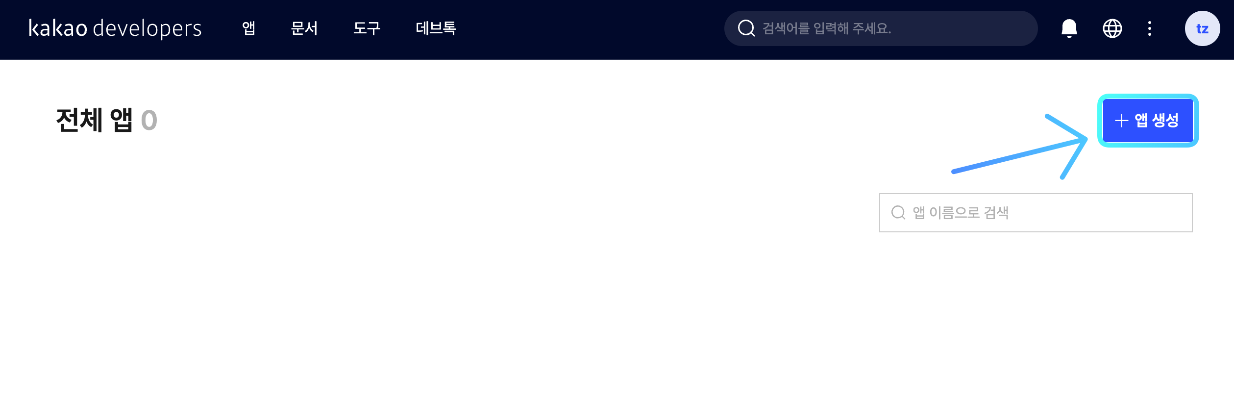 2. 상단 앱 메뉴를 클릭하여 앱 콘솔 페이지로 이동