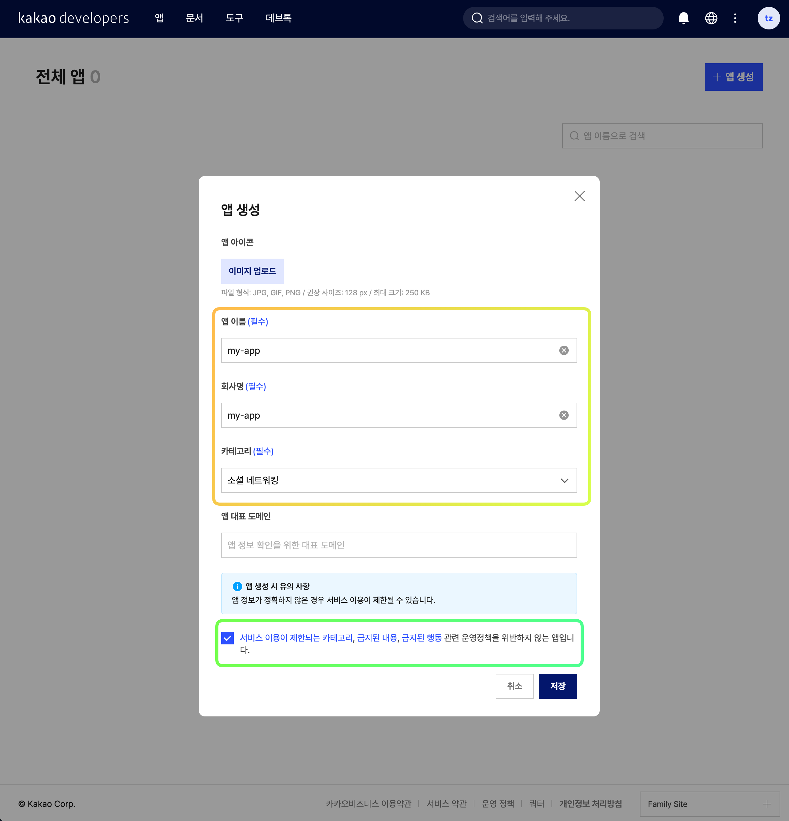 4. 필수 항목 입력/체크 후 저장(나머지는 추후 수정이 돼서, 생략 가능)