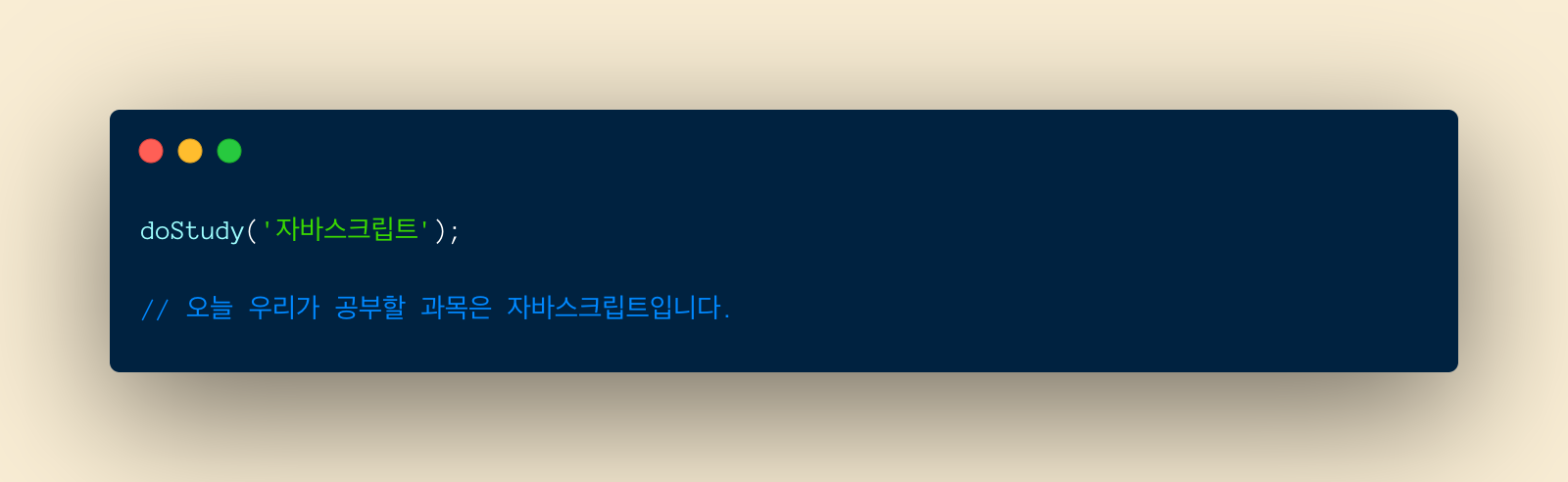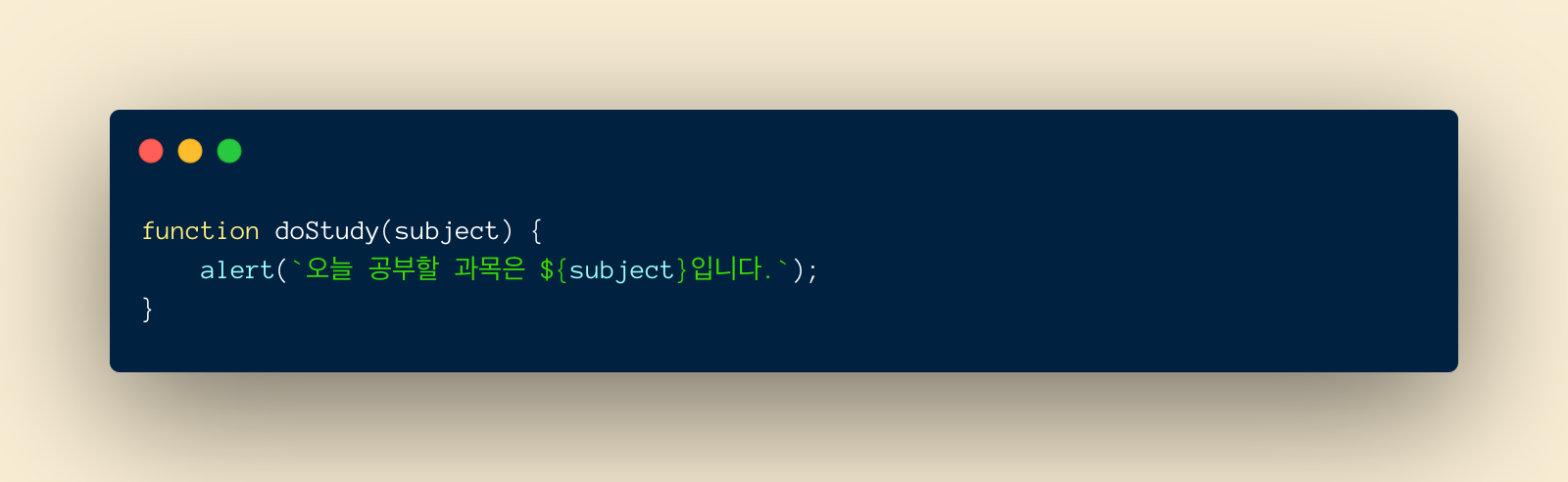 doStudy()라는 함수를 만듭니다. 이 함수는 우리가 공부할 과목을 변수로 받습니다.