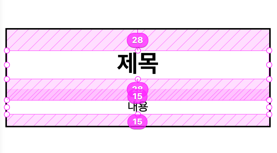 제목과 내용 사이에는 여백이 28px + 15px을 더한 43px이 아닌, 28px이 적용되었다. 둘 중에 더 큰 크기의 여백으로 합쳐진(축소된) 것인데, 이것을 "마진 상쇄(또는 마진 겹침, Margin Collapsing)"라고 부른다.