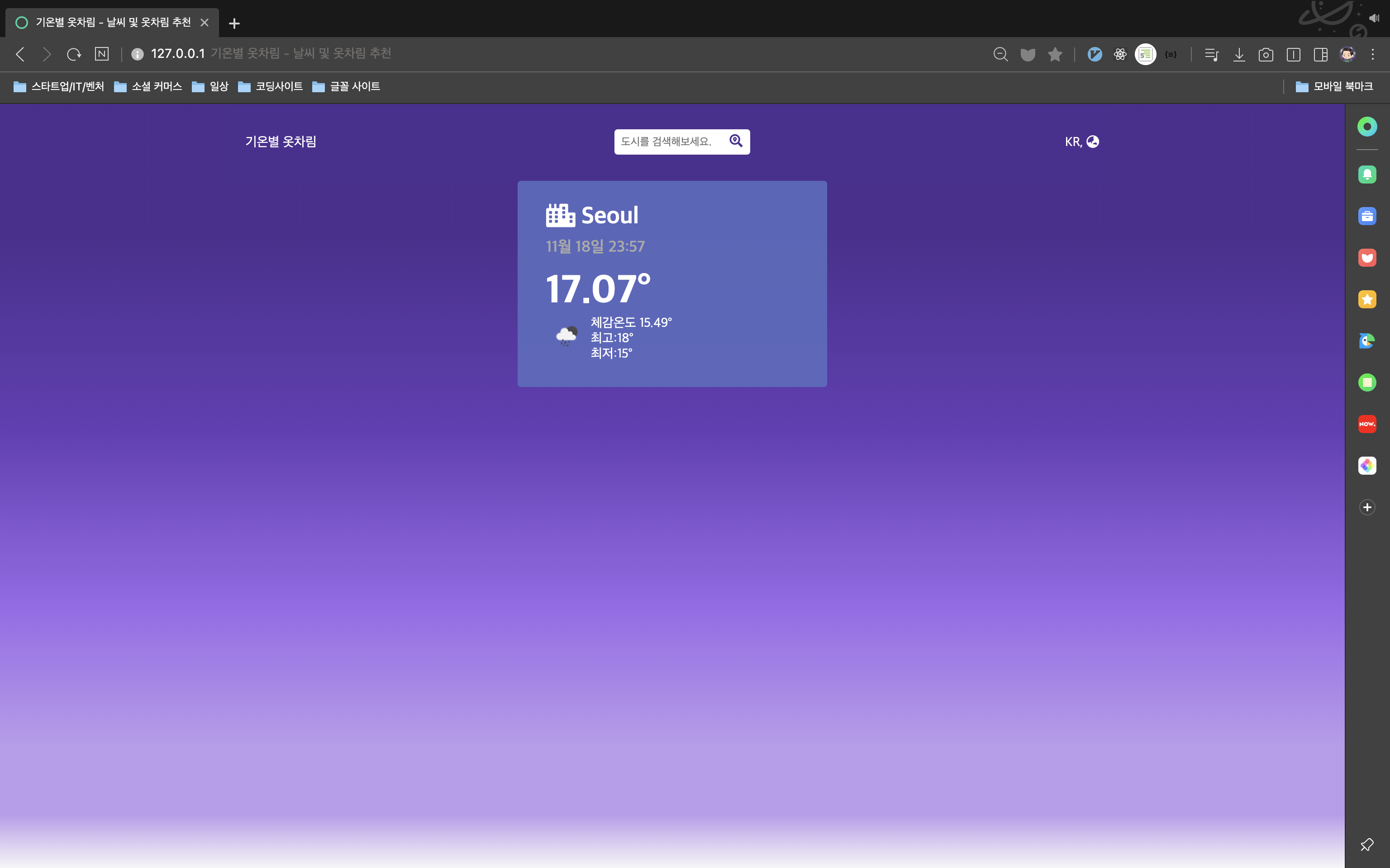 개인 프로젝트 첫 단계 시작 🏃🏻♂️ 개인 프로젝트인 기온별 옷차림(가제, 假題) 첫 단계를 시작했습니다. 제일 먼저 해야할 일은 날씨 API를 사용하는 것이라고 생각했습니다. API를 처음