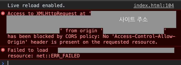 그러나..여기서 CORS 에러가 발생하게 됩니다.