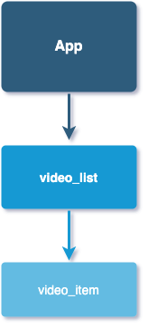 간단하게 인기 동영상 25개까지 제목을 뽑기 전에 컴포넌트 구조는 위 다이어그램과 같다. 최상위 App 아래 비디오 리스트 컴포넌트 그 아래엔 비디오 아이템 컴포넌트를 생성하자.