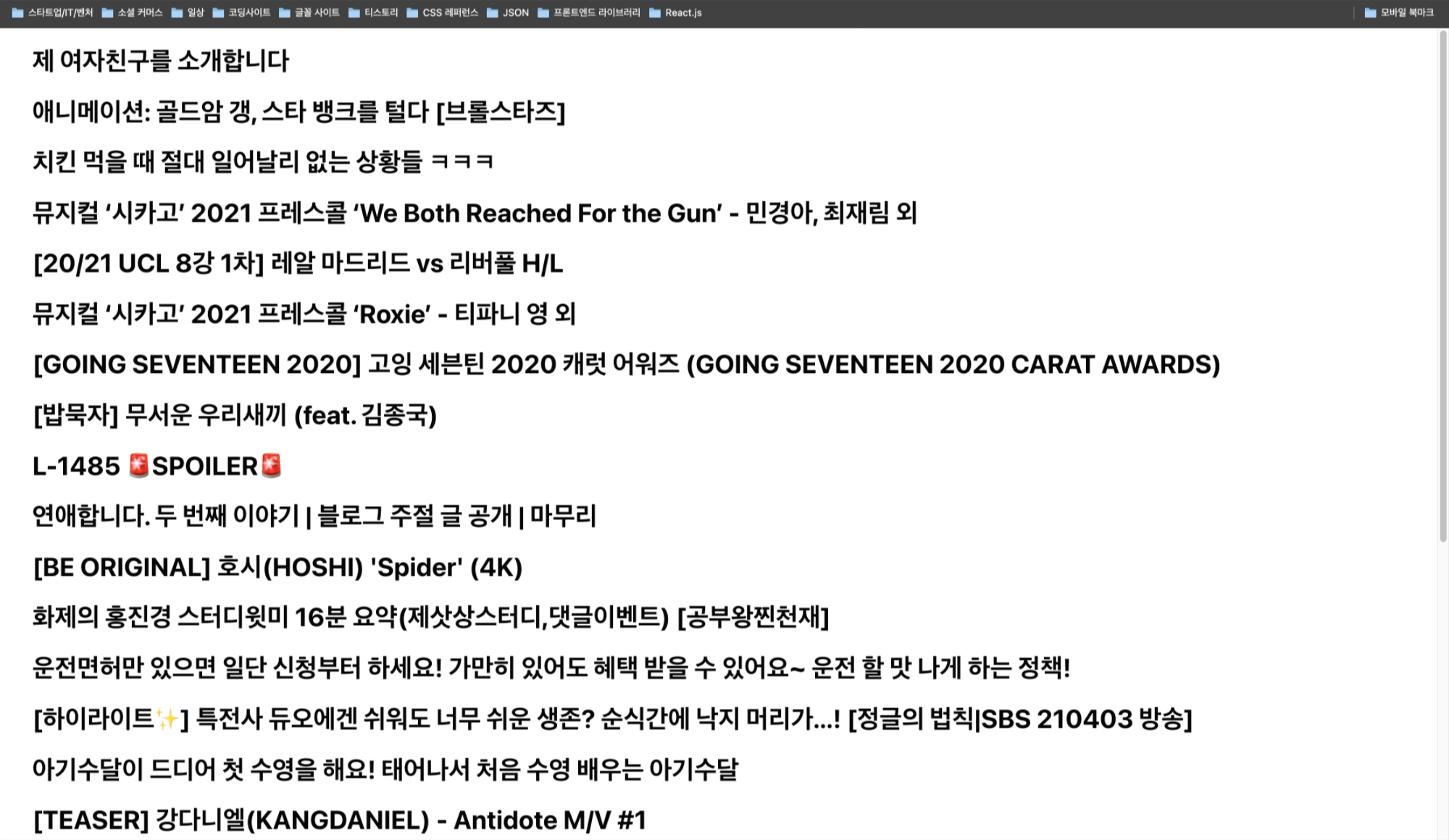 | [React.js] 유튜브를 만들어 보자 (0) | 2021.04.30 |