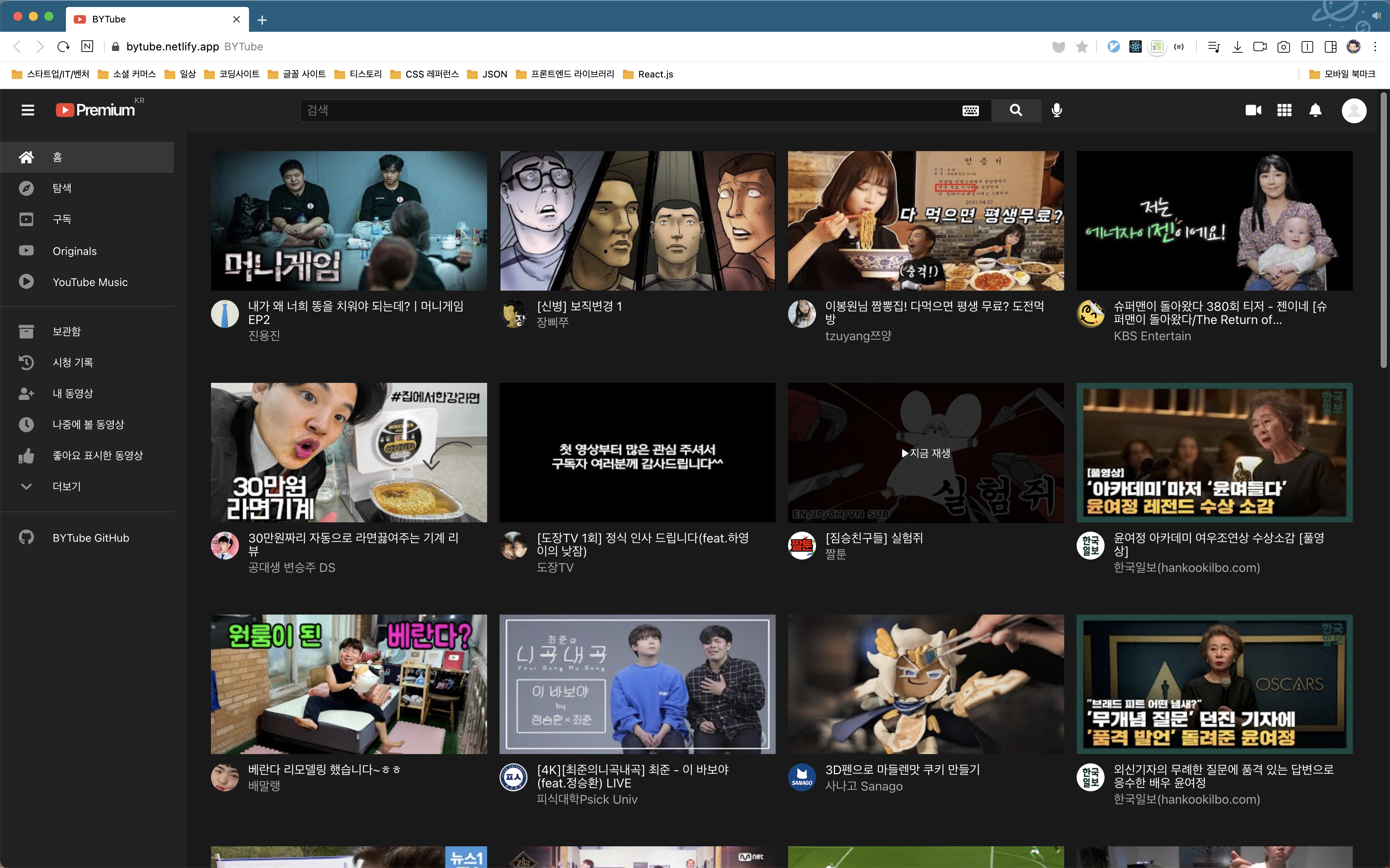 content="*PC 화면에 최적화* 리액트로 만든 유튜브 클론 프로젝트입니다."