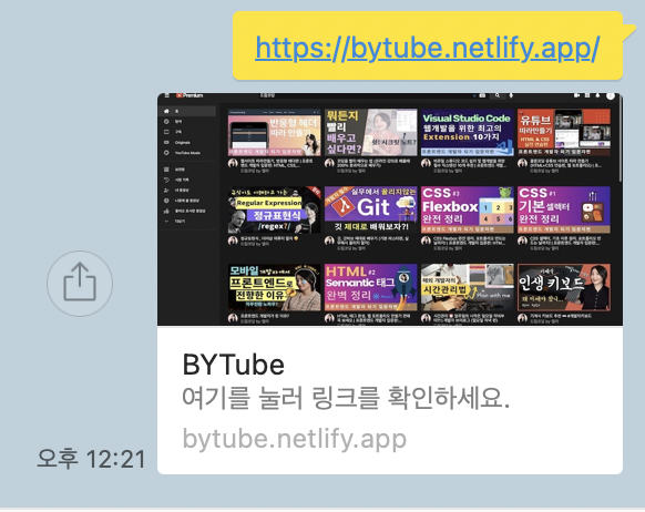 - 나는 프로젝트를 완성하면 지인에게 공유하곤 하는데 링크만 달랑 보내기엔 뭔가 볼품없기도 하고 사기(?)같아 보여서 링크를 보낼 때 썸네일이 보이도록 했다.
