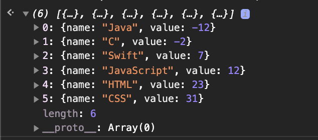 { name: 'Java', value: -12 },