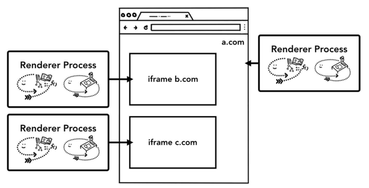 사이트 격리는 단순히 별개의 렌더러 프로세스를 할당하는 것이 아니다. iframe들이 통신하는 방식을 근본부터 변경하는 것이기 때문에 수 년간의 공학적 노력이 필요했다고 한다.