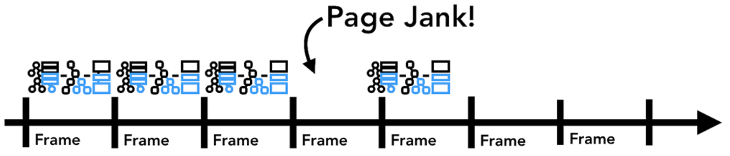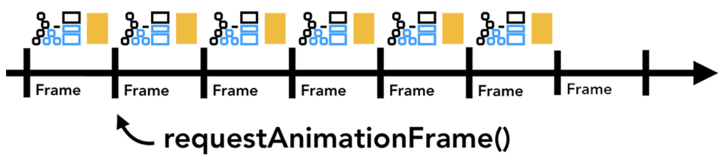 따라서 자바스크립트 동작을 requestAnimationFrame()을 이용하여 작은 단위로 나누어 매 프레임마다 실행하는 것을 미리 설정 할 수 있다.
