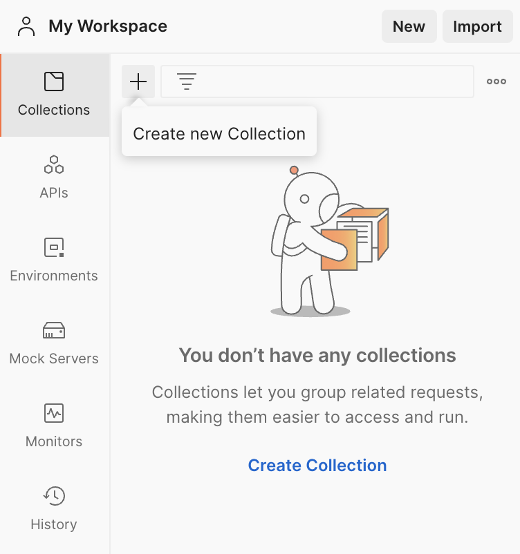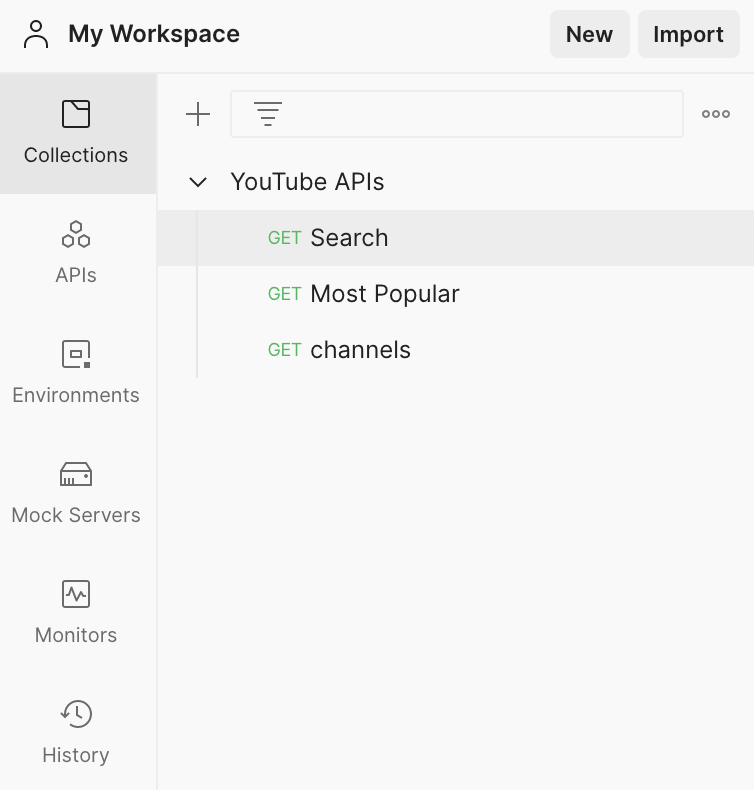 앱 설치가 완료되면 이제 포스트맨에 새로운 API 컬렉션을 추가해보자. 나같은 경우 유튜브 API를 추가할 것이기 때문에 컬렉션 이름을 Youtube Data APIs로 지었다.